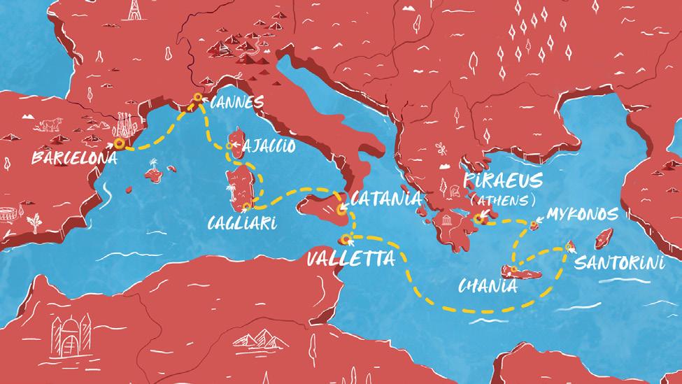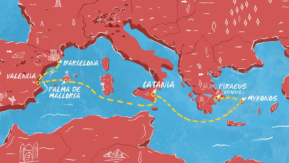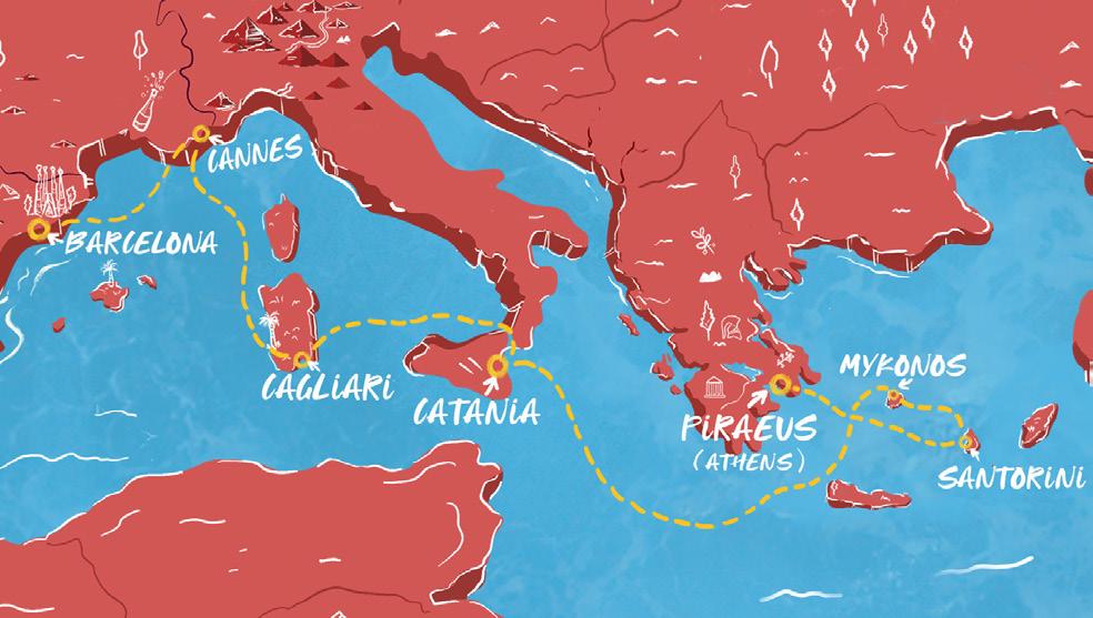 This 7-night Mediterranean voyage begins in Athens and docks the following day in mystical Mykonos. From there spend a day sailing to picturesque Catania, an ancient city on the Ionian Sea that radiates Sicilian vibes through and through. From there you’ll spend a day sailing to Palma de Mallorca followed by Valencia, Spain before arriving at your final destination of Barcelona.