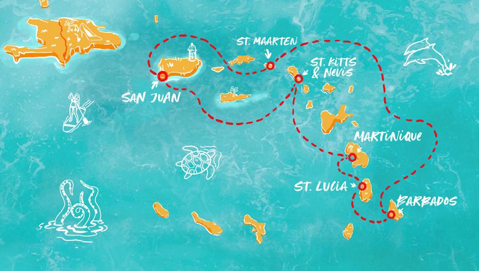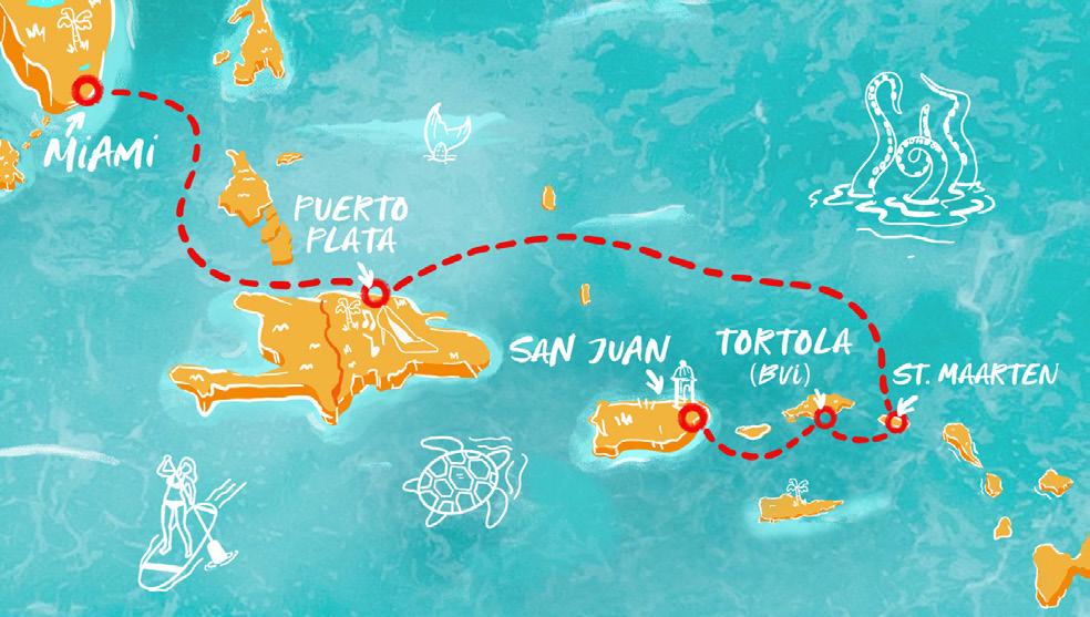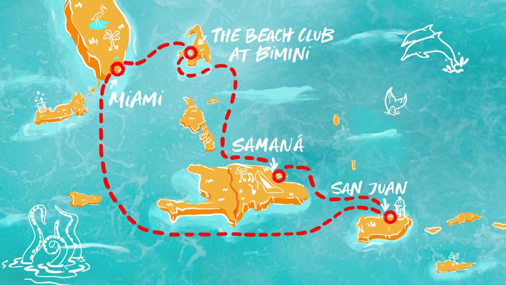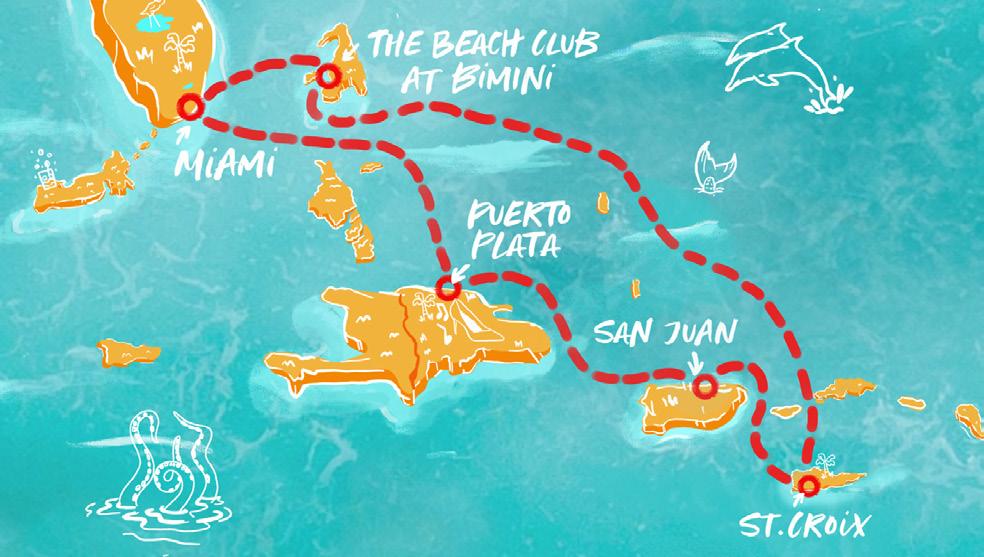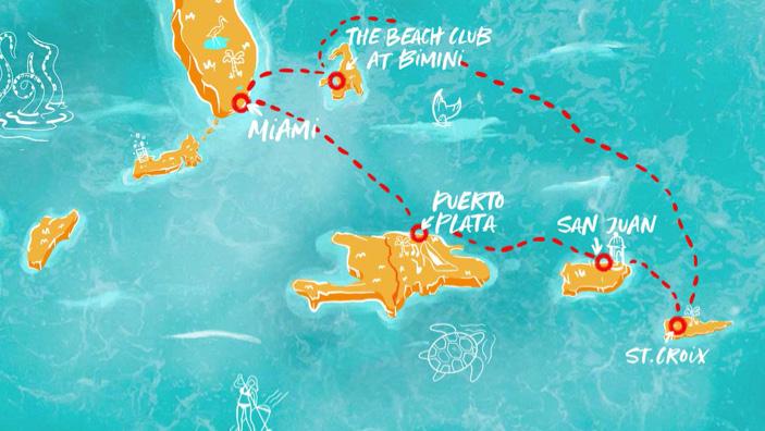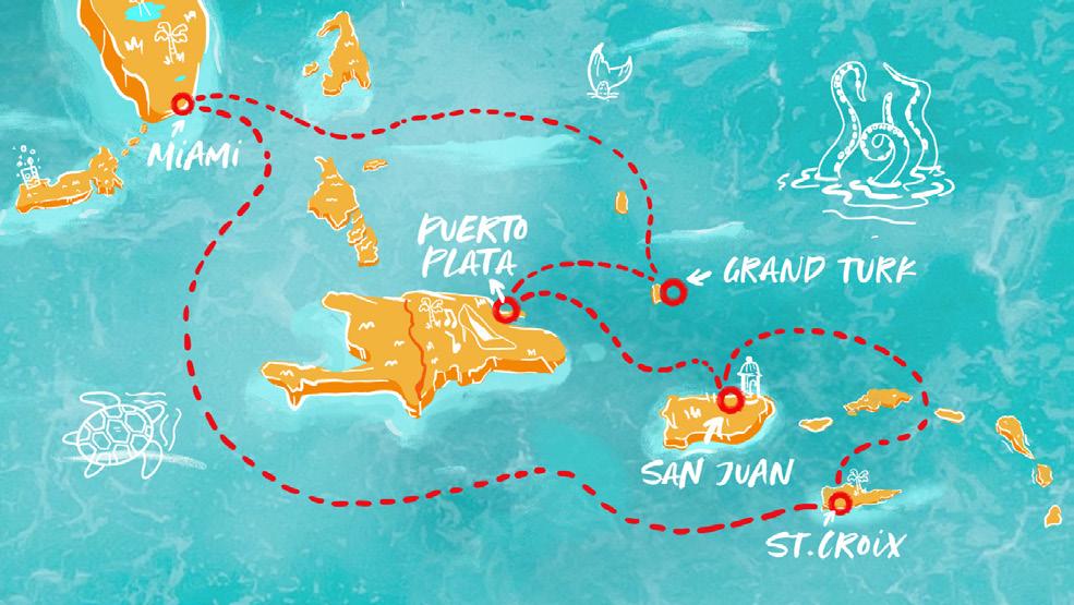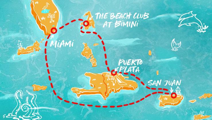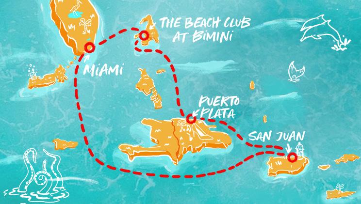 After a day spent in the botanical gardens, deep- sea diving, and swimming the white sand beaches of Puerto Plata, you’ll head to San Juan for an all-day, late-night stay (leaving at midnight) and on to St. Croix and The Beach Club at Bimini — where you’ll revel in picturesque days and relaxing, chill vibes under swaying palms.
