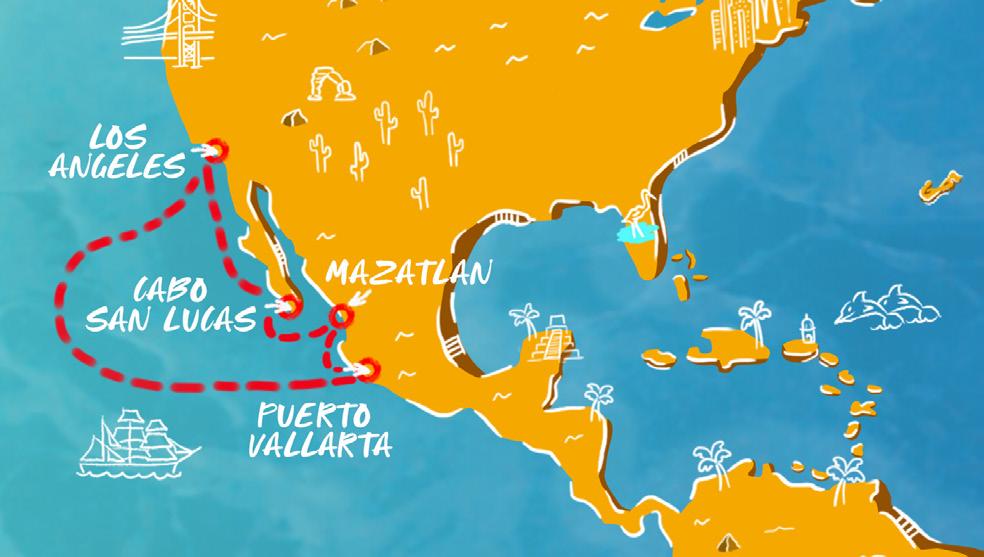 This 6-night journey starts from Los Angeles with a full day of self-care and soaking up the sun while sailing to Cabo San Lucas. The next day you’ll arrive to miles of sprawling beaches and an exciting cultural scene in Mazatlàn - an idyllic place for infinite reasons. After, you’ll have two more days to relax on the ship before returning to LA.