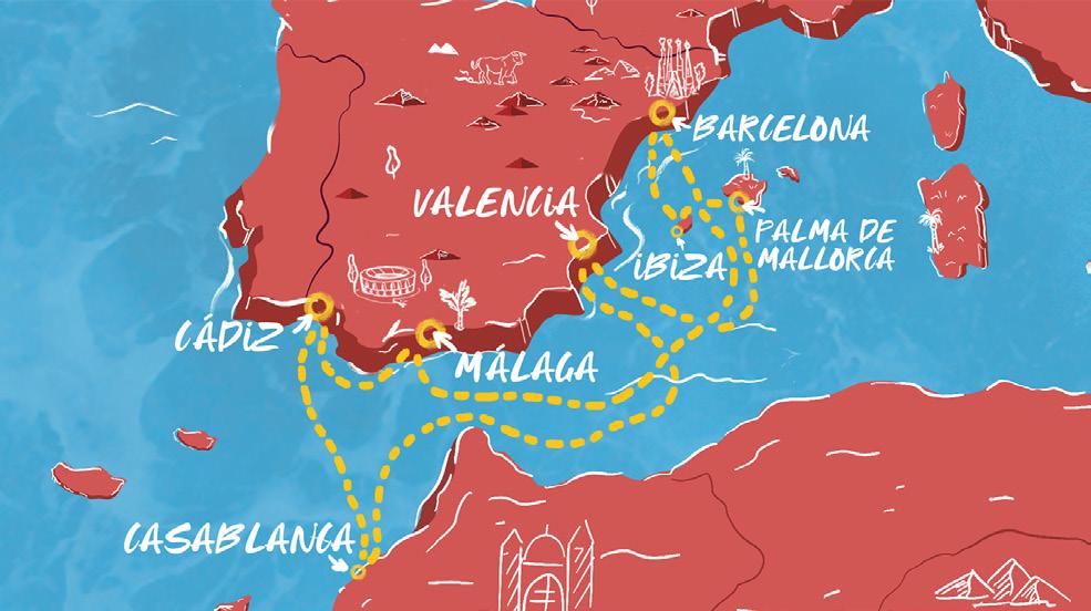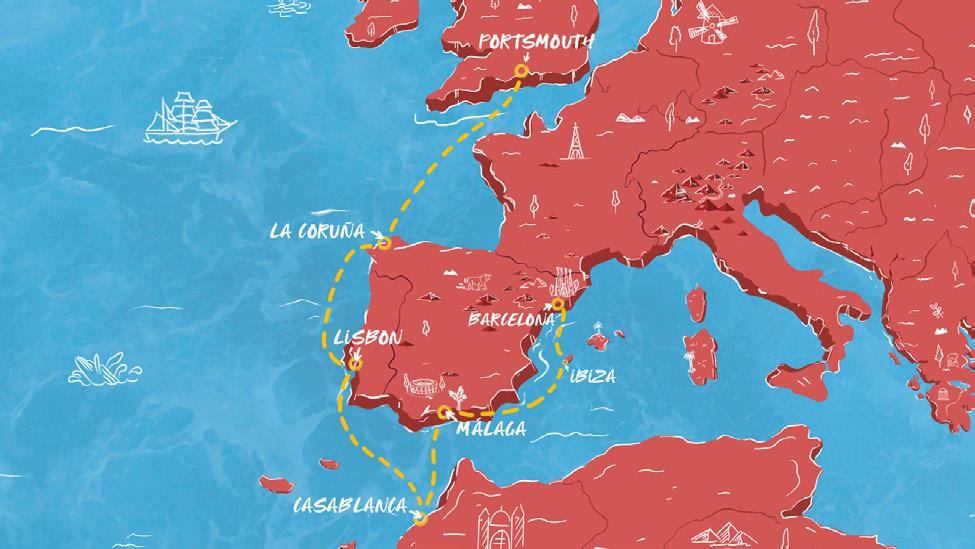 This 13-night impressive excursion departs from Portsmouth and spends two days sailing to La Coruña, Spain. Then spend two days in Lisbon before heading to Casablanca. One more day of luxury at sea will take you to the sprawling beaches of Màlaga, Spain before another day sailing to spend two full days of fun under the sun and the stars of Ibiza before arriving at your final destination of Barcelona.