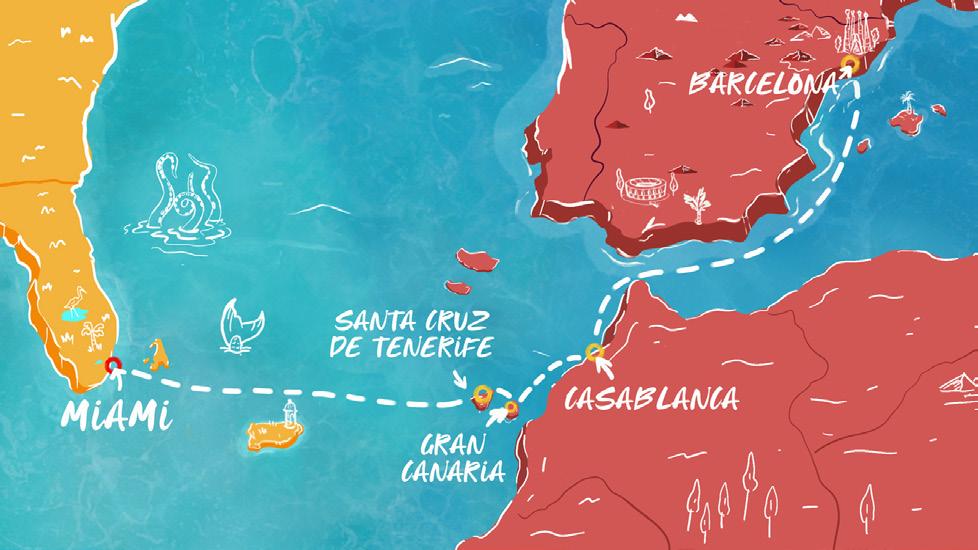This 15-night ocean-crossing odyssey departs from Miami, spends 8 luxurious days at sea on the way to your first destination – Gran Canaria, Las Palmas, Spain. The next day you’ll make your way to Tenerife, Canary Islands, followed by another day at sea to the ever-magical Casablanca, Morocco, followed by one more sea day to Valencia, Spain before finally arriving in Barcelona.