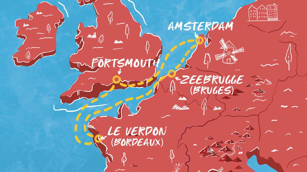 This 7-night adventure departing from Portsmouth first docks in Amsterdam for two full days – allowing ample time for exploring the cobbled, eclectic-facade lined streets before heading to Bruges, Belgium. Then spend a day of self-care at sea on your way to brilliant Bordeaux, the awe-inspiring heart of France’s wine country, before spending a day back on board returning to Portsmouth.