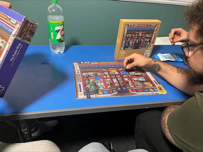 Support comes in many forms, and the biggest impact is not just from tailored interventions Our Activities Coordinator set up a “Puzzle Group,” a space for our residents to slow down and reflect while speaking with our Forensic Psychologist in a psychologically informed environment. These have been popular activities for residents, which helps build a sense of community. A resident thanked the team with a letter for support during an activity and took a photo of their creation before moving to independent accommodation