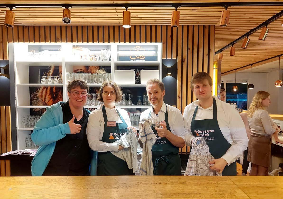 Onze Garsons Uniek zorgen ervoor dat elk feest een beetje meer gaat stralen. Natuurlijk helpen ze met eten en drinken, maar ze brengen vooral gezelligheid, een glimlach en een luisterend oor. Ze maken graag een praatje en zorgen dat iedereen zich welkom voelt. Zo wordt elk evenement net dat tikkeltje warmer. Het mooie van dit project is dat het mensen met en zonder beperking bij elkaar brengt. Tijdens hun werk beginnen onze Garsons soms heel vanzelfsprekend een gesprek over hoe het is om te leven met een beperking. Niet om te beleren, maar om anderen te laten nadenken en beter te begrijpen. Als zo’n gesprek blijft hangen, weten we dat onze missie geslaagd is.