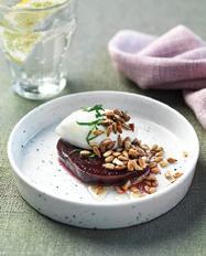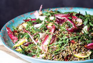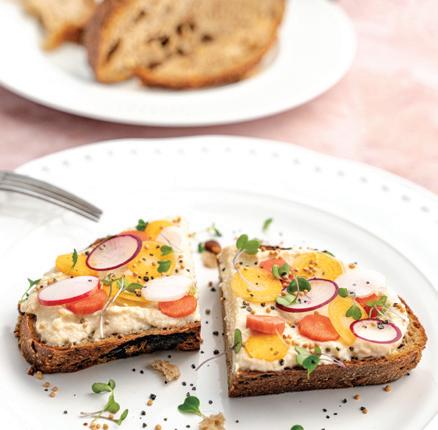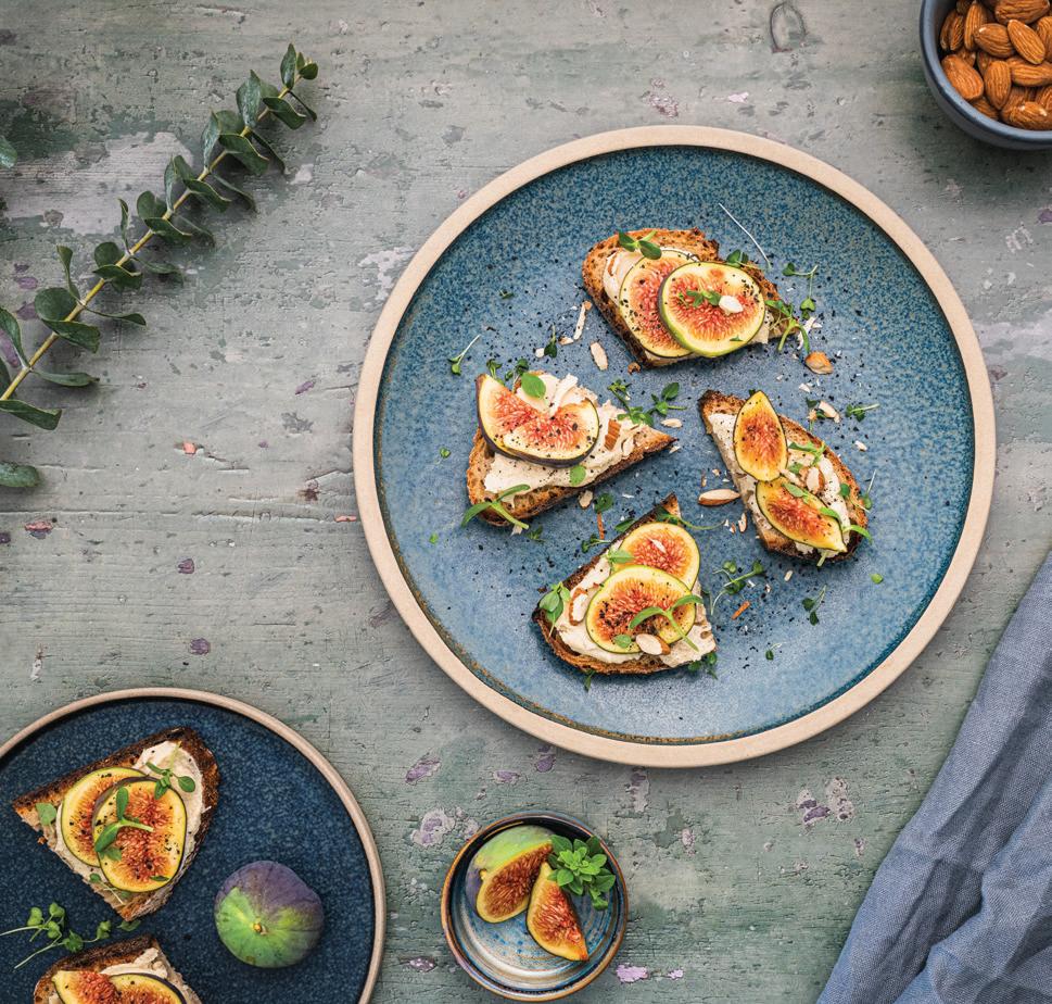 Cover: Beet, Arugula and Walnut Salad. Opposite page: Chia Pudding with Fresh Berries and Peaches. This page: Sliced Fig, Herbed Hummus and Walnut Toast. All by Aymeric Halbmeyer.
