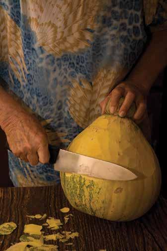 Se usa calabaza sehualca, (amarilla grande), se le quita la parte dura de la cáscara, se abre y se le quitan las semillas.