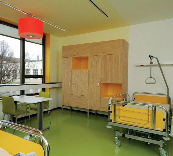 Aux étages supérieurs, en revanche, les zones sont évidemment subdivisées en fonction de la gravité de la pathologie : aux étages inférieurs séjournent les patients présentant les troubles les plus légers et ne présentant aucun danger pour eux-mêmes ou pour les autres, tandis que les zones supérieures sont destinées aux patients qui nécessitent un plus grand contrôle et, malheureusement, de plus grandes limitations : dans ces services, la liberté de mouvement est limitée par des portes, les fenêtres ne permettent pas de se pencher à l'extérieur et les chambres n'accueillent qu'un seul patient. Ce qui est surprenant, cependant, c'est que même dans ces espaces, on ne perçoit pas la sensation d'un hôpital, mais que tout (des couleurs des murs aux lumières, en passant par les chaises) crée une "aura" de familiarité et de foyer.