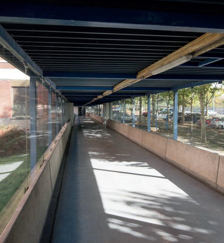 La planification de la conception vise à utiliser des matériaux à faible impact environnemental et à mettre en œuvre un concept d'ergonomie pour les personnes qui passent leur temps à l'intérieur du bâtiment et sur le site. L'ergonomie signifie à la fois d'un point de vue fonctionnel et thermique et d'un point de vue esthétique : le moins d'impact possible sur le paysage. A cet égard, l'hypothèse du projet prévoit en premier lieu d'isoler le bâtiment préexistant par l'extérieur afin d'amortir les points thermiques présents, corrigeant ainsi les éventuels problèmes d'infiltration et d'isolation. Cependant, l'objectif est de maintenir l'harmonie présente dans l'élévation avec la méthode de brise-soleil en béton afin de préserver les caractéristiques originales du bâtiment, tandis que dans un deuxième temps, il sera nécessaire de renouveler les fenêtres et les portes. Les portes, par exemple, seront coulissantes dans la mesure du possible afin de libérer la circulation et d'éviter les poignées.