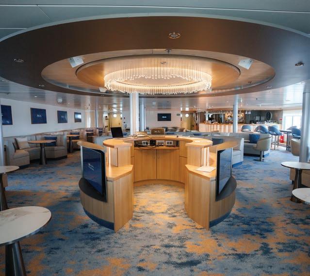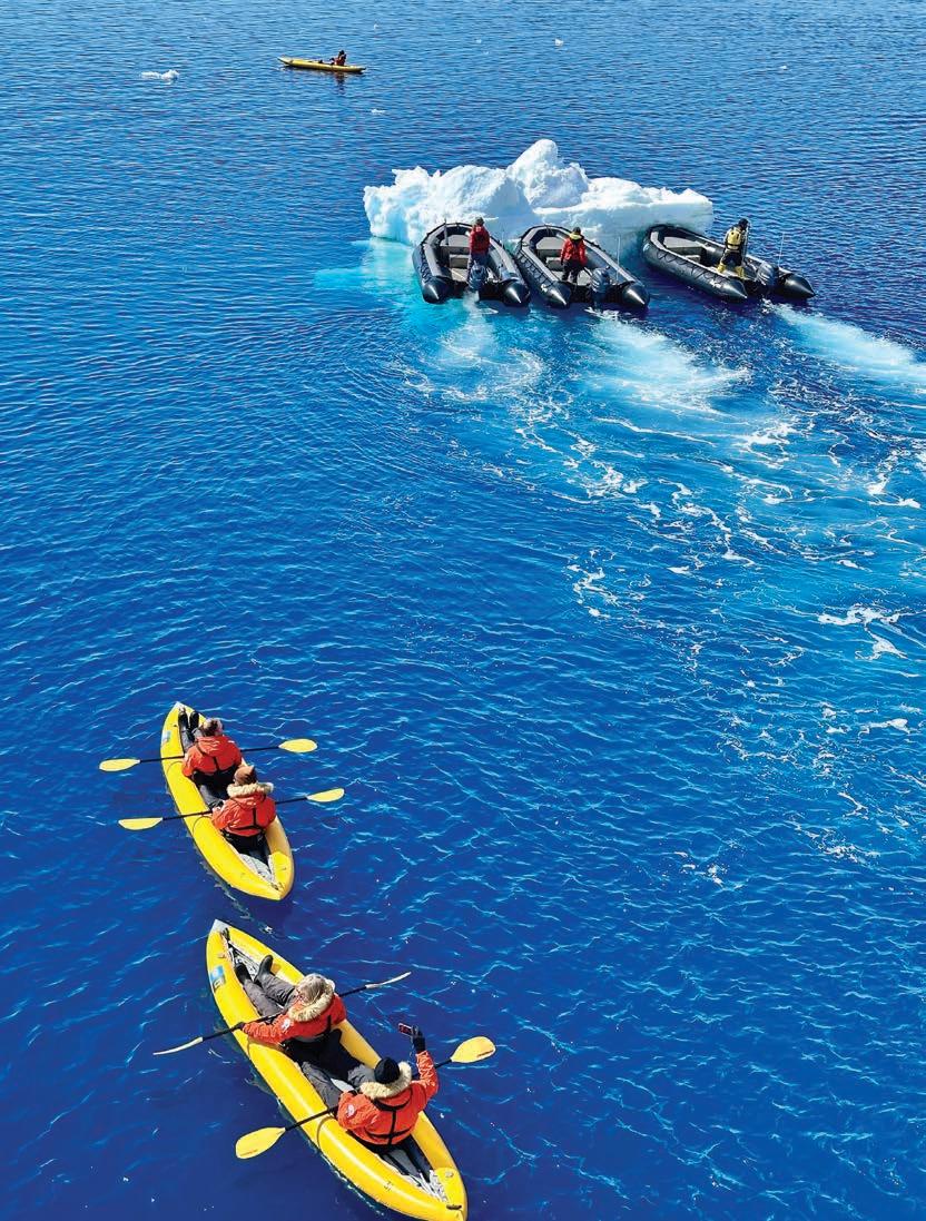 With its sleek, Scandinavian-inspired interiors and an abundance of fine art (including dramatic photography by artistin-residence Eric Guth), the ship experience is akin to staying in a luxury land-based hotel. Hotel director Patrik Svarcmyr's affableness, evidenced by donning Viking attire to deliver spiked hot chocolate to guests while on a Zodiac expedition, undoubtedly inspires the quick camaraderie that develops among passengers.