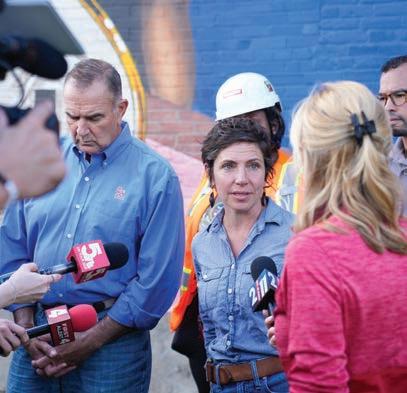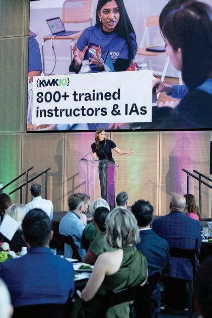 St. Louis native, supermodel Karlie Kloss joined Enterprise Mobility President and CEO Chrissy Taylor at Energizer Park to celebrate the 10th Anniversary of “Kode with Klossy” (KWK) - a transformative nonprofit she founded that provides computer coding camps and learning experiences for young women 13-18 years who have been underrepresented in the technology field. “I’m a proud nerd,” Kloss said. “Long before I was on the cover of Vogue, I fell in love with science at Webster Groves High School and thought I’d follow in my dad’s footsteps and become a doctor.” At 15 years old, while building her fashion career, she met tech company founders and wanted to understand the technology behind their business. She decided to sign up for a twoweek coding bootcamp in New York. Today the KWK organization hosts coding camps across the U.S. with more than 11,000 scholars hailing from 99 countries. In St. Louis, almost 300 young women have participated in the technology camps. To date, 78 percent of alumnae across the country chose college majors or minors in computer science or engineering, far exceeding the national average of 4 percent for women in these disciplines. At the soccer stadium, Kloss pledged her support to the St. Louis Community Foundation Tornado Response Fund.