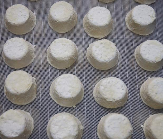 Tours of the farm start in the cheesemaking room. Guests slip on blue booties, hairnets and lab coats before stepping into the sour-sweet air of active fermentation. A small team of cheese