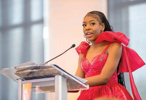 Lift For Life Academy, the first charter school to open in the City of St. Louis, celebrated its 25th school year at its annual Fashion Showcase and Luncheon at The Ritz-Carlton on April 27. The sold-out event, attended by 400 guests, supports the educational experience that LFLA offers to students in grades K-12 at its campus south of downtown. Guests enjoyed a fashion show in which 18 high school students walked the runway in garments that they had designed and sewed for the event. In addition, students from LFLA’s music, computer coding and chess programs demonstrated their skills during a reception prior to the luncheon. Attendees could buy student work from the school’s woodworking, photography and ceramics classes.