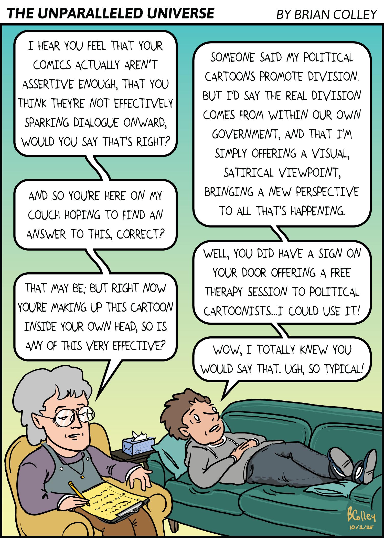 Some say the opinion page should avoid controversy or lean “less left.” Yet the press earns its keep by airing every viewpoint, not by muffling the ones labeled progressive. A free society doesn’t punish ideas for sitting on one side of the spectrum; it weighs them, tests them, and lets readers decide. If Colley’s cartoons tilt left, fine — print them. If another artist tilts right, print those too. The answer to speech you dislike is more speech, not less.