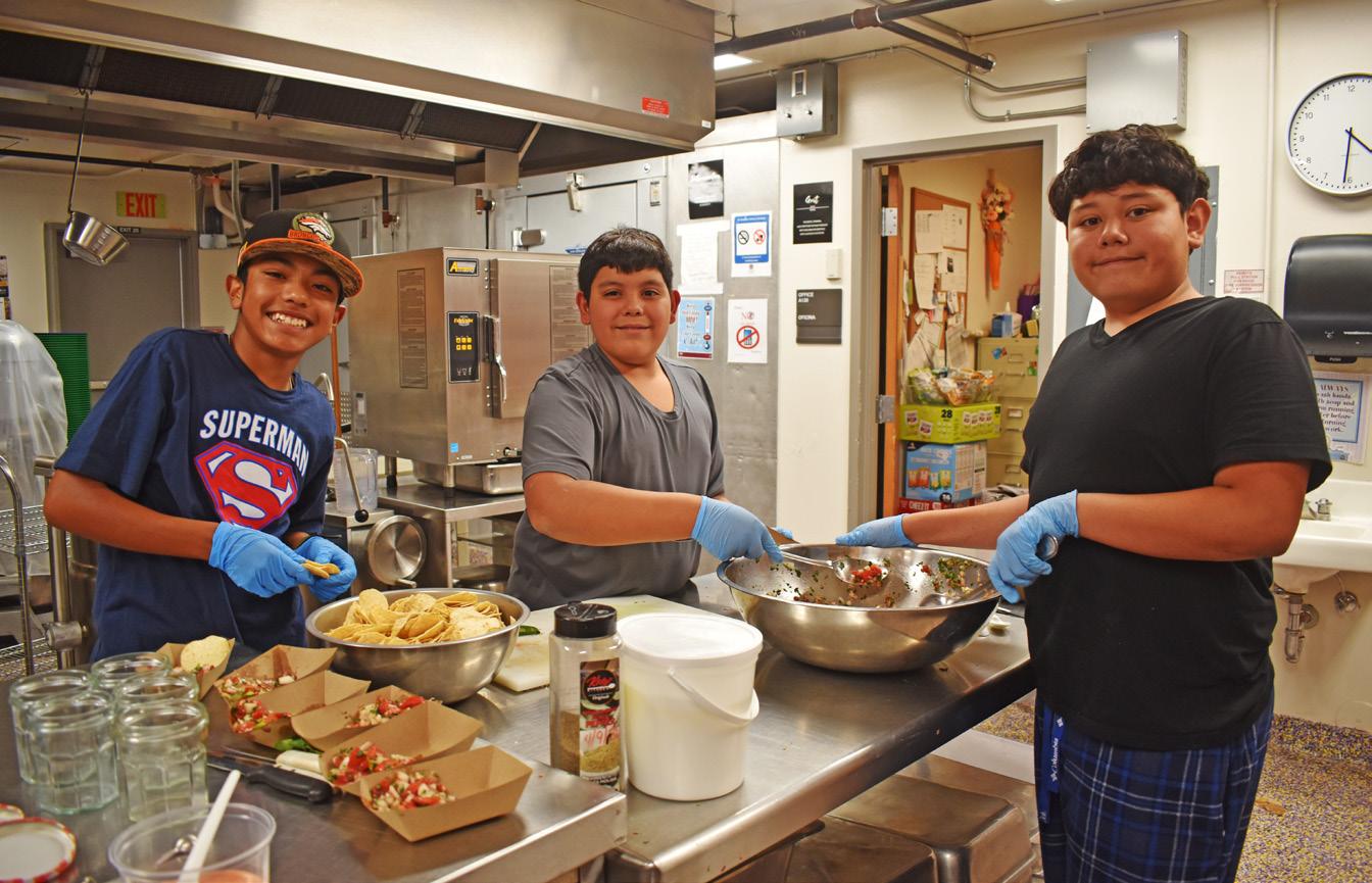 After washing the vegetables, the team set some aside to be roasted and eventually blended for salsa.