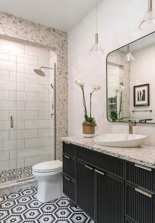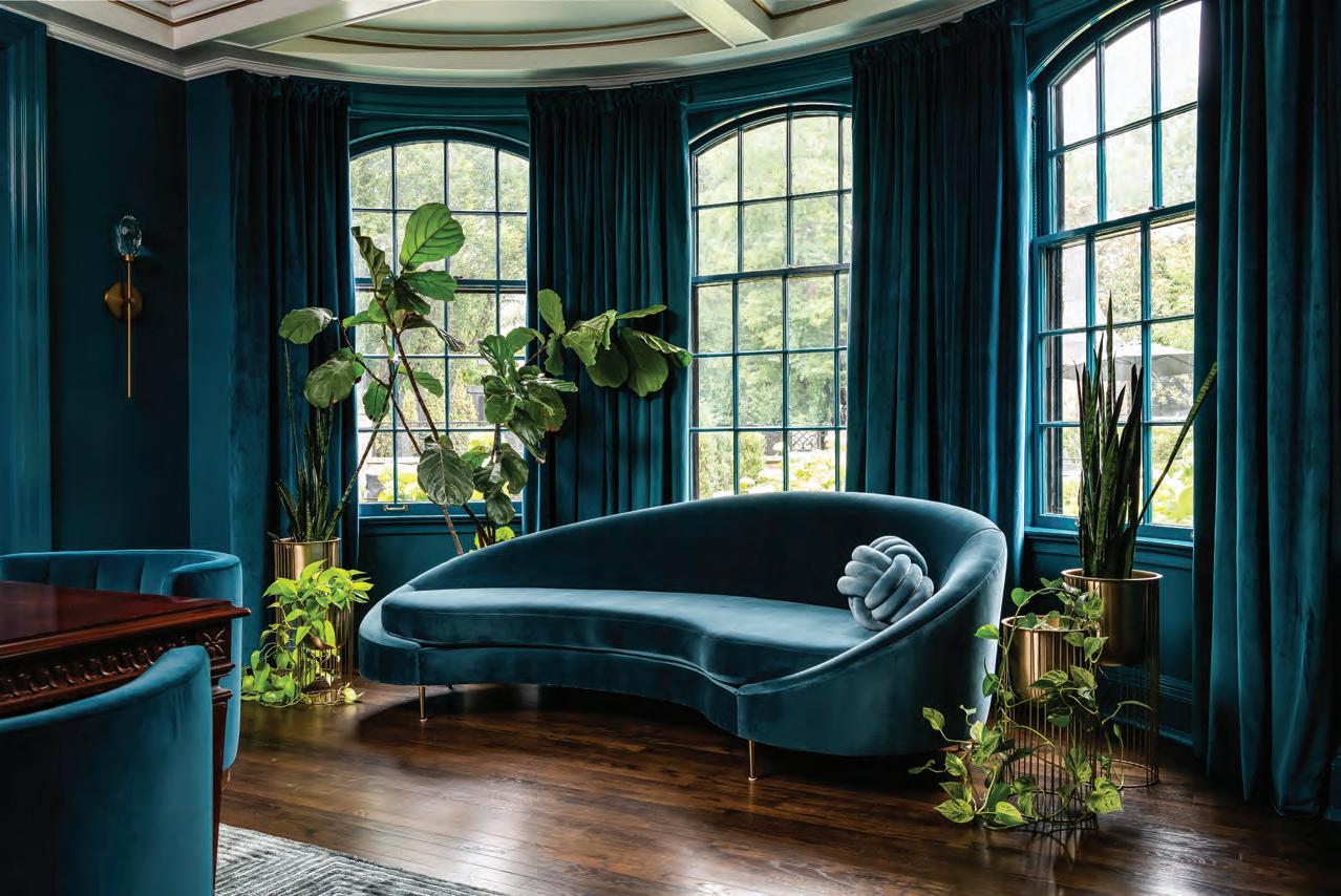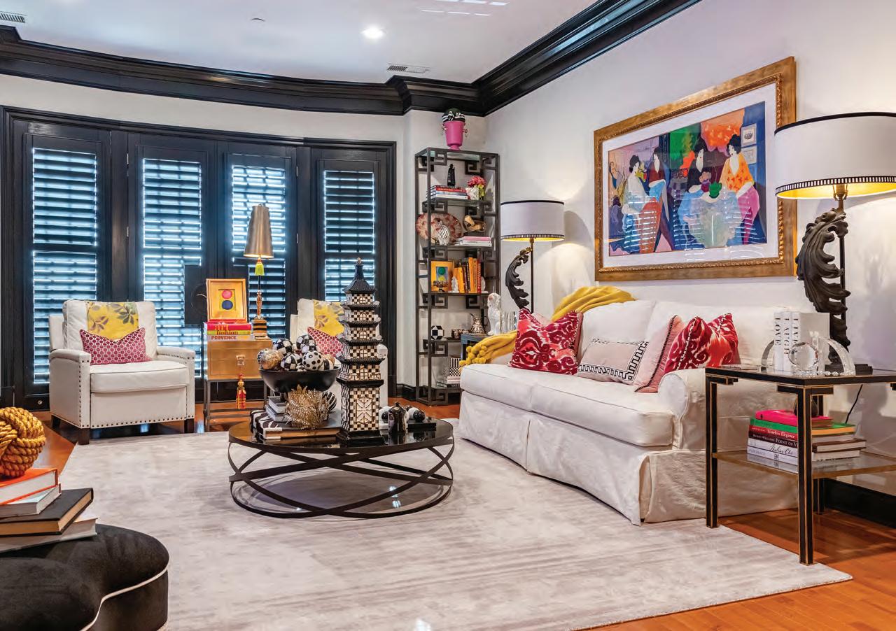 One of the first and most impor tant parts of the renovation was painting all of the woodwork, doors and shutters black. This intentional design choice highlights the classic architecture and adds undeniable character to each room. “The black trim and doors pop against the white walls and add such depth to the space,” mentions Carol.