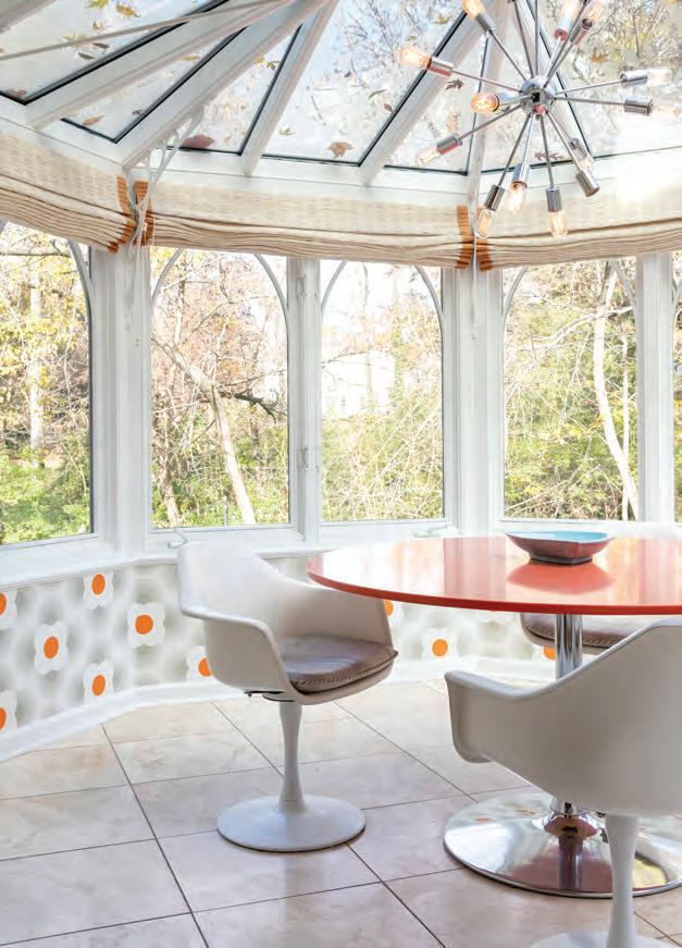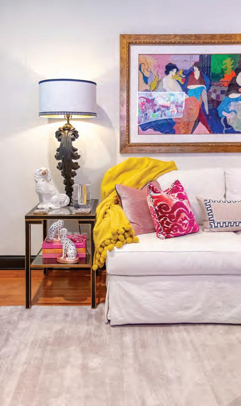 to Barbara’s favorite color. By keeping the foundational elements of the design bold yet neutral, the perfect backdrop for colorful accents was created.