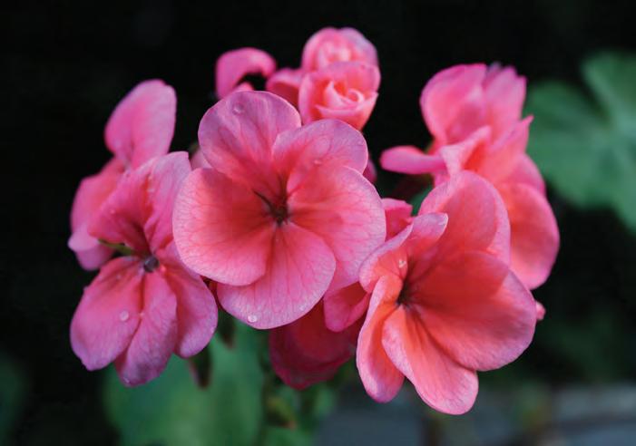 Geraniums love to be in the full-sun with a regular watering schedule. These plants require little fertilizer and prefer well-drained soil. They are annual flowers and typically are done growing after the first freeze of the year.