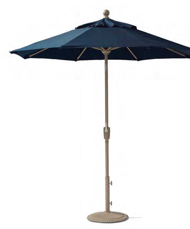 eleven. Soleil chase, chair and umbrella table and market umbrella, available at Frontgate.