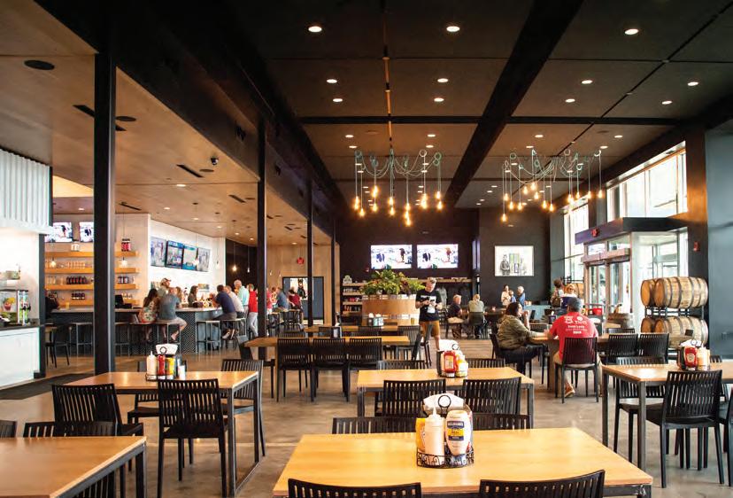 In the heart of The Hub, 4-Hands Brewery and Hi-Pointe Drive-In teamed up to provide a oneof-a-kind dining experience. Visitors can enjoy locally crafted beers and burgers while watching sporting events on indoor screens, as well as the outdoor stage. Firepits line the patios to provide additional warmth and guests are only a step