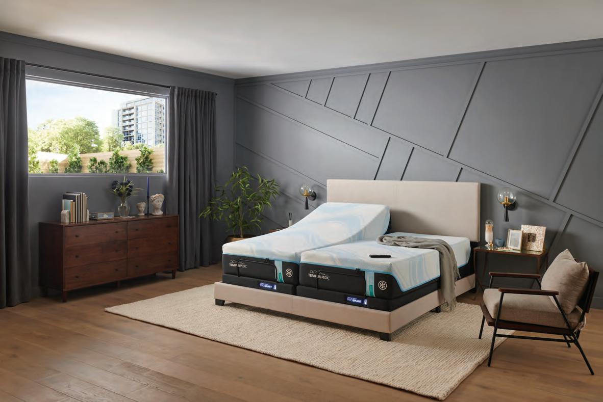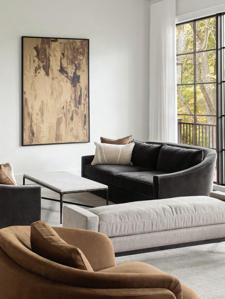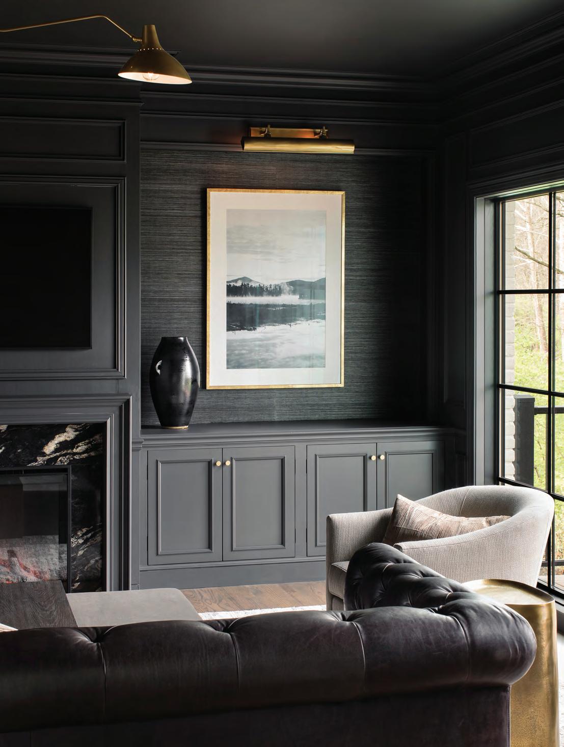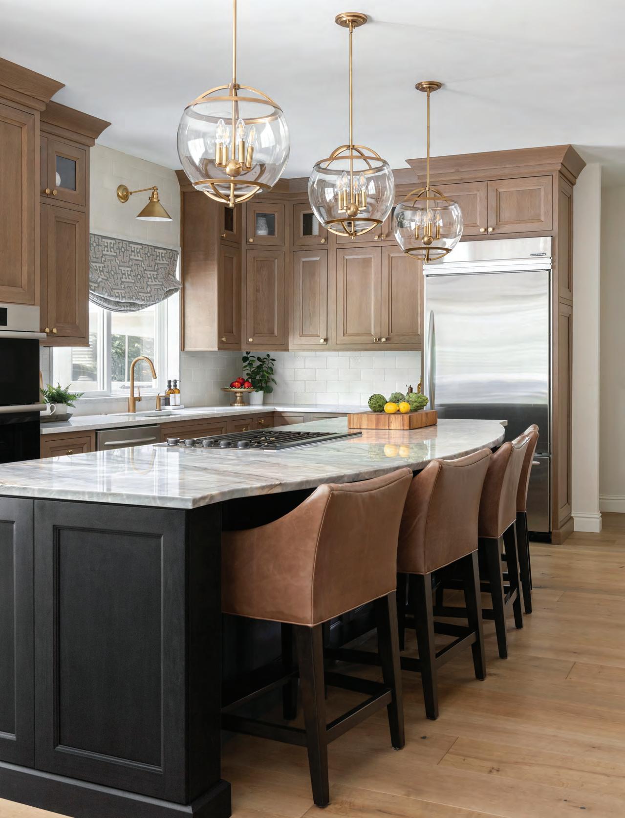 to each have their own storage space in the bathroom. Black-lined rectangular mirrors sit above the vanities and are lighted by minimalistic, rectangular lighting. Overall, Alspaugh Kitchen & Bath was able to accommodate the client’s vision and goals for the space. More storage, a calming atmosphere and separate toilet room, shower and tub were added to the space through substantial changes. “The final project depicts a beautiful space that was achieved through calming colors, ambient lighting, softly balanced patterns and functional design,” says Chris. See stlouishomesmag.com for resources.