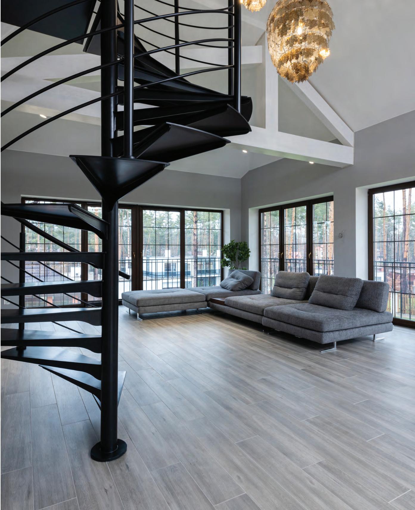 When starting a flooring renovation, a client should evaluate the traffic level of their home. Do they have a lot of traffic with kids and pets? Or, do they have low traffic with lower activity? These types of questions help our staff determine which type of floor, grain and texture is most suitable for their specific situation. Both color and grain will greatly impact the overall aesthetics of the area. Lighter tones tend to open spaces and lend themselves to a casual, neutral palette while darker tones create a warmer, cozier feel.