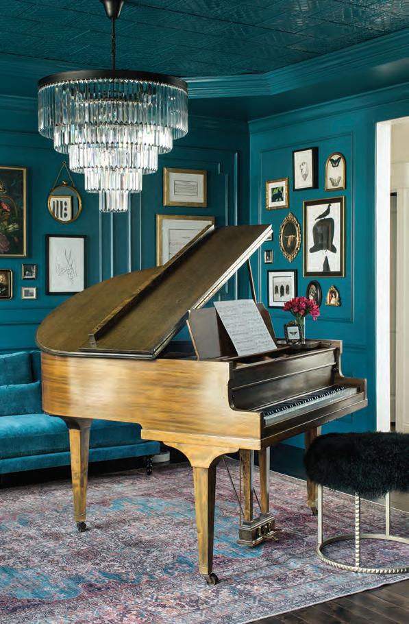 Tak ing her own advice, she says she designed the music room with a mix of vintage and glam. It makes her happy. “Every time I look at that room I smile,” she says. See stlouishomesmag.com for resources.