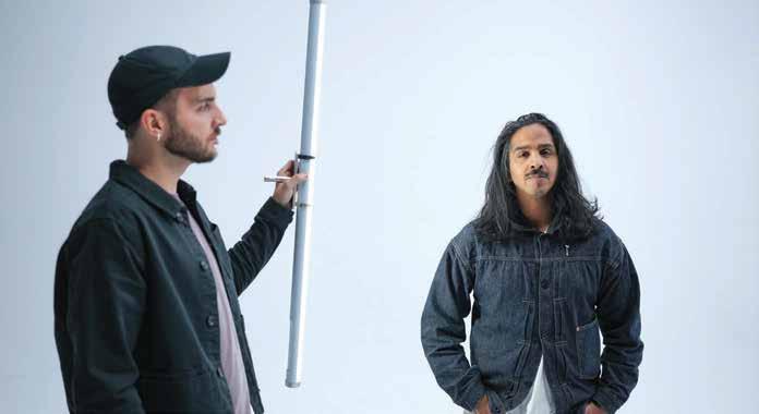 Filmaker Emilio Di Stefano (left) follows Viktor Fredbäck (right) on his quest for jeans.