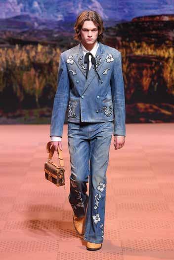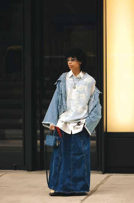 04 • RIVET CONTENTS OLIVIA PONTON • BY THE NUMBERS 3 M FOLLOWERS ON INSTAGRAM 7. 7 M FOLLOWERS ON TIKTOK COVER + THIS PAGE: JUUN.J SEQUIN BODYSUIT AND DENIM JUMPSUIT; ETRO MULES. PHOTOGRAPH BY EMERALD LAYNE 06 THE PULSE All the essentials for a stylish festival wardrobe. 09 THE ZEITGEIST The summer's biggest films, tours and festivals. 12 THE RIVETING LIST The latest collections from top denim brands. 14 SOCIAL WORLD How to pull off a successful influencer trip. 20 RIVETING RETAIL Inside Imogene + Willie's Austin, Texas boutique. 23 WESTERN WAY What's next for Western fashion's revival? 28 DREAM CHASER TikTok star and model Olivia Ponton brings thiis season's boldest denim trends to life. 38 MUSIC NOTES Designers on the deep connection between musicians and denim. 42 FROM THE RUNWAY Skirts, gray denim and embellishments lead F/W 24-25 runway trends. 44 CULT PHENOM Ron Poisson shares how denim-rooted Cult of Individuality stays close to the culture. 48 ABOVE & BEYOND Steven Bethell, founder of Bank & Vogue and Beyond Retro, on the future of resale. 54 TO DYE FOR Biotechnology firms invest in bio-based alternatives to petroleumbased dyes. 58 NOBLE CRAFT Demand and prices for linen denim are growing. 62 SWEET IDEA Cotton Incorporated’s circular vision includes recycling cotton into glucose. 70 AMSTERDAM AWAITS Jeans School students share their favorite spots in the denimfriendly city. 74 STATUS SYMBOL Calvin Klein introduced the first “status jean” half a century ago.