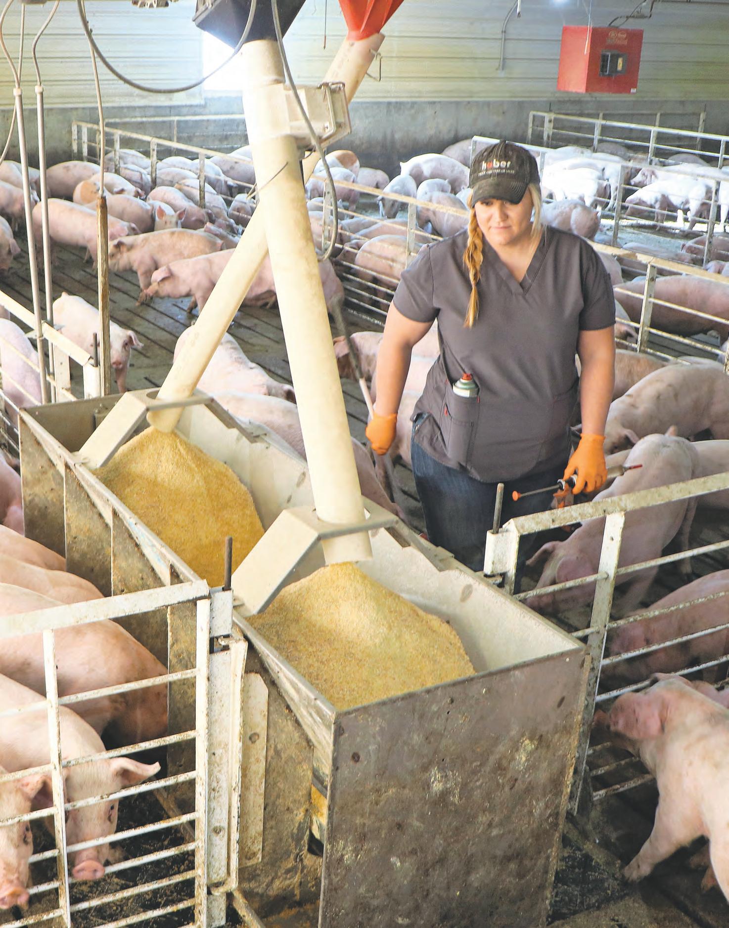 Samantha “Sam” LaMont, 31, grew up on a farm and has always liked animals, but she trained as a dental hygienist. She now manages a wean-to-finish barn that holds up to 2,400 hogs that are contract-fed for Windy Oak Farms, of Iowa.