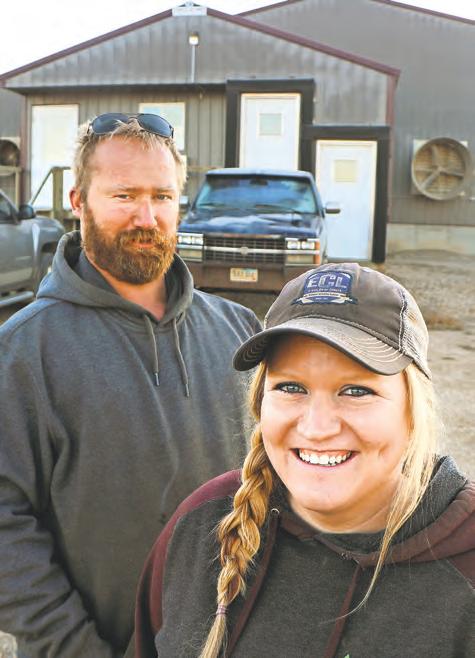 Samantha “Sam” LaMont, 31, and her husband, Taylon, 35, at the TSL Inc. hog barn in Carpenter. An Iowa-based family owns the pigs. Sam manages the farm a mile from their farmstead, adding equity and manure nutrients for crops.