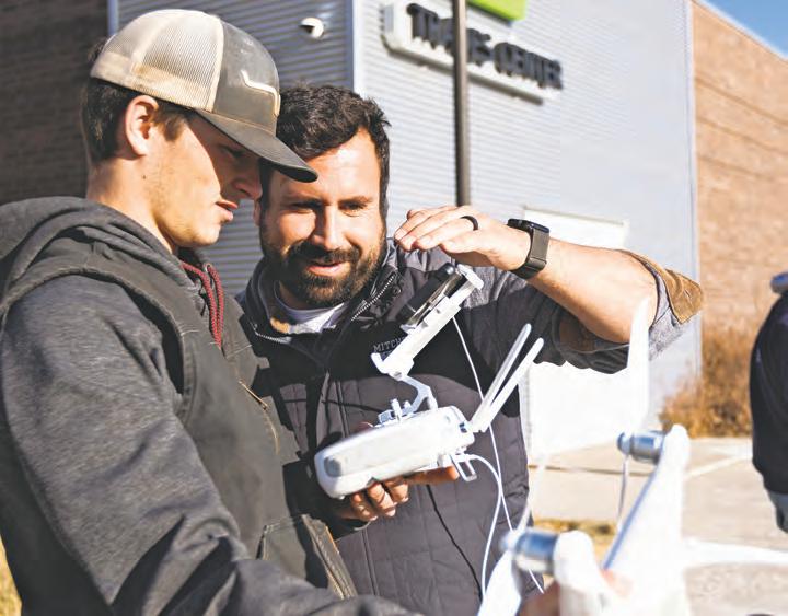 “I’d say, for the most part, I was one of those people. I thought I needed to go to school to prove something to myself, and I just looked around and it piqued my interest. I did not know what to expect, but I thought it would be cool to have a job where I could fly drones and get information for farmers and coops,” Robinson said. “I found myself in that position. I got the job and love it every day. It’s probably one of the best decisions I’ve ever made.” ◀