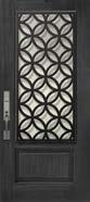The decorative grilles shown in this section are either real hand-made wrought iron grilles (photo at far right), or are laser or plasma cut steel grilles (photo at near right), cut on CNC machines. These iron or steel grilles are noted throughout this section. Either way, they mount and function on the door the same way, and all are powder-coated for durability. Several of the doors with wrought iron grilles also have matching sidelites available. These are noted under each door in this section.