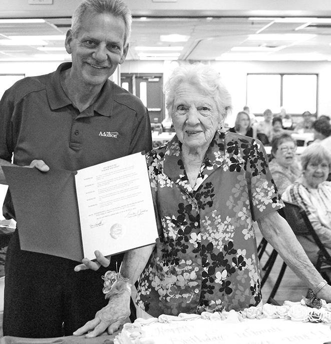 On July 9, the Village of Addison said happy birthday to Addison resident Winnie Servedio, who celebrated her 104th birthday! Addison Mayor Tom Hundley and staff dropped by the village’s Senior Club meeting to join the celebration and honor her with an official proclamation wishing her a happy birthday from all of Addison.