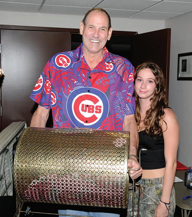 The winner’s share in Villa Park Veterans of Foreign Wars (VFW) Post 2801’s current Queen of Hearts contest stands at more than $45,000. The contest’s ticket drawing takes place each Friday night at 8 p.m. The ticket that’s selected from the contest drum during the drawing includes a number on the contest board that has not been revealed. If that numbered space contains the Queen of Hearts, the ticket holder claims the winner’s share of the prize pot. There are now 34 covered spaces on the contest board. The Queen of Hearts is hidden behind one of those spaces. There is also one joker hidden on the contest board. If that joker is revealed before the Queen of Hearts, the jackpot will keep growing, but the contest board will be reset, with 54 covered spaces, representing a full deck of cards and two jokers. Michael Huston of the post’s contest committee is pictured (above - holding the contest drum) as he stands next to his daughter, Melanie Huston, moments before the drawing on Friday, July 25. Lee West purchased the ticket that was drawn from the contest drum. West had written the number 41 on that ticket. The card behind that spot on the contest board was revealed to be the 6 of Diamonds. West (pictured left) won $25 for having his ticket selected during the drawing. The next drawing will take place this Friday, Aug. 1. The post, located at 39 E. St. Charles Road, is open to the public. A five-pack of contest tickets costs $5. Tickets are available at the post during the week and up until a few minutes before each drawing. Contestants do not have to be present at the drawing. One more photo (top left) from after the July 25 ticket selection and reveal shows (left to right) three members of the post’s contest committee—Mike Vitullo, Huston and Mary Agrusa.