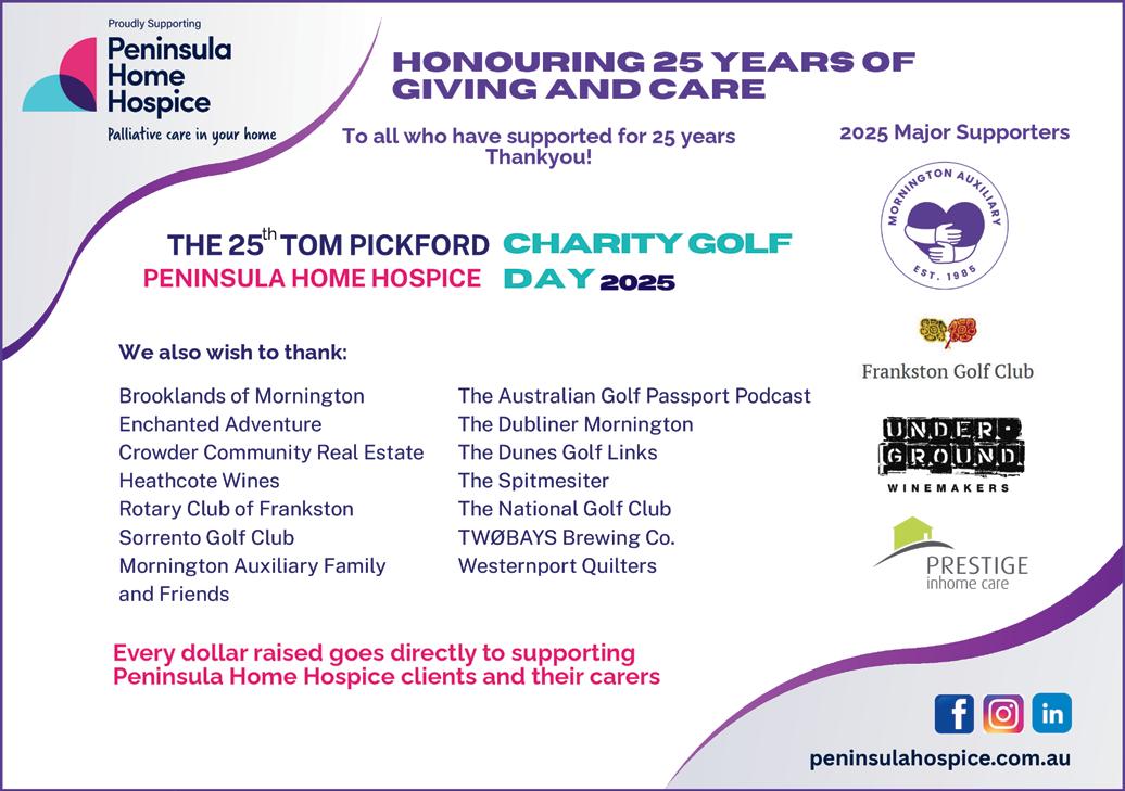 Devilbend, Flinders, and HMAS Cerberus Golf clubs are also supporting the day by donating rounds of golf for the winners.