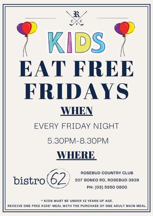 Councillors also endorsed 18 proposed projects for the Safe Local Roads and Streets Program for new roundabouts, raised intersections, and traffic calming measures including at Rye, Rosebud, Dromana, Hastings, Balnarring, Safety Beach and McCrae. Continued on Page 5