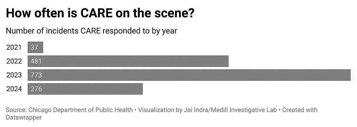 But that, increasingly, is not the way the program is working. A six-month investigation by Medill Investigative LabChicago and MindSite News found that CARE teams are responding to fewer and fewer mental health calls, that police are responding to the vast majority, and that the overall effort is hampered by dysfunction and bureaucratic infighting.