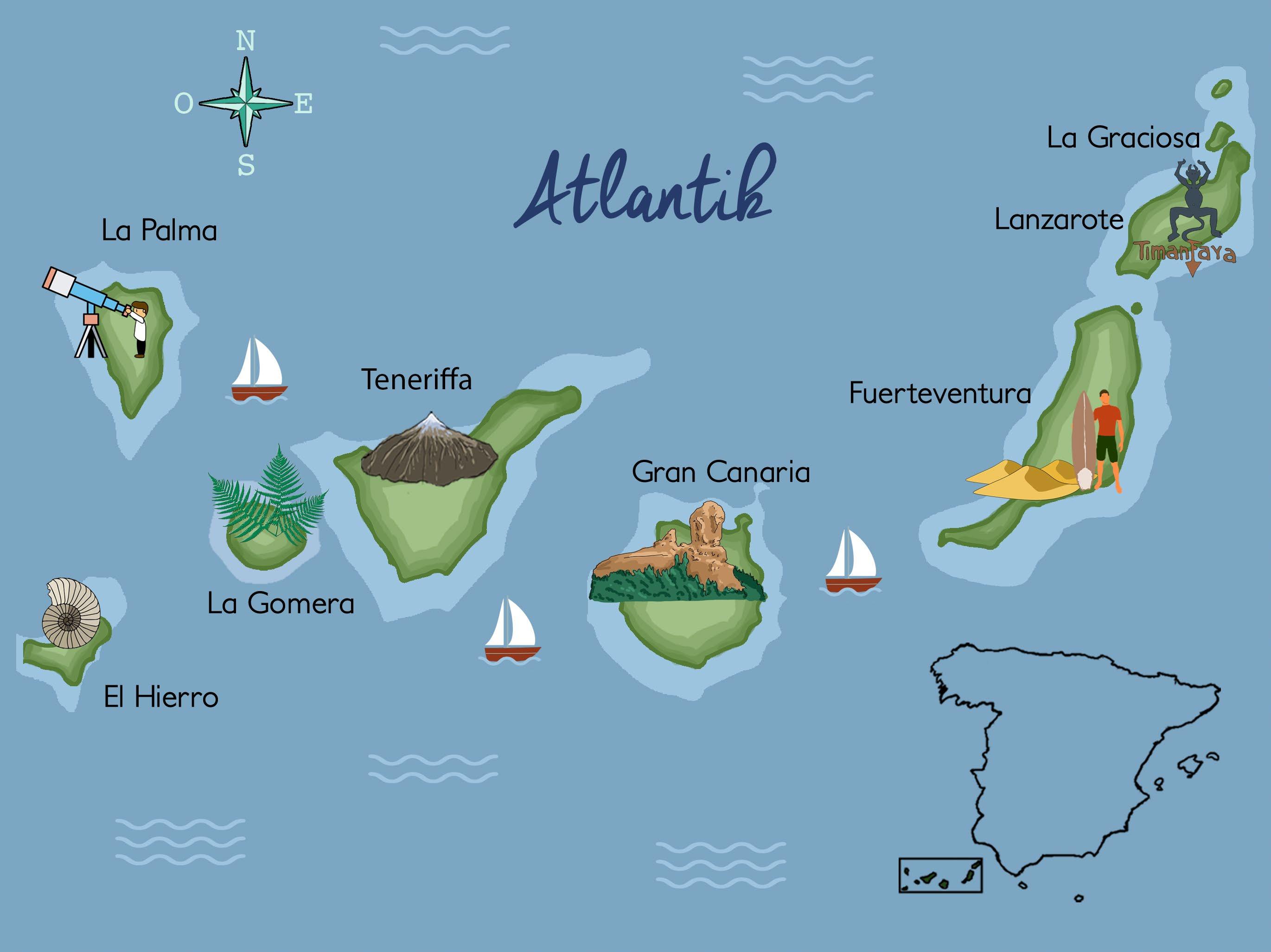 Ein ganzjährig hervorragendes Klima, traumhafte Strände, Natur, Kultur, Spaß ... Die Kanarischen Inseln sind verlockend wie kaum ein anderes Reiseziel. Ein Paradies mitten im Atlantik mit acht Inseln, von denen jede einen ganz individuellen Charakter besitzt. Hier können Sie zu jeder Jahreszeit an Stränden mit feinem Sand und kristallklarem Wasser baden, sich sonnen, tauchen und surfen. Darüber hinaus bieten die Kanaren aber noch weitaus mehr als nur Küste. Die Landschaften im Inselinneren laden zu zahlreichen Aktivitäten an der frischen Luft ein: Hier können Sie wandern, Mountainbike fahren, Vögel oder Sterne beobachten. Abgerundet werden die Aktivitäten im Freien durch Städte und Dörfer als Ausflugsziele, die ihren Besuchern Spaß und ein bezauberndes Ambiente bieten.