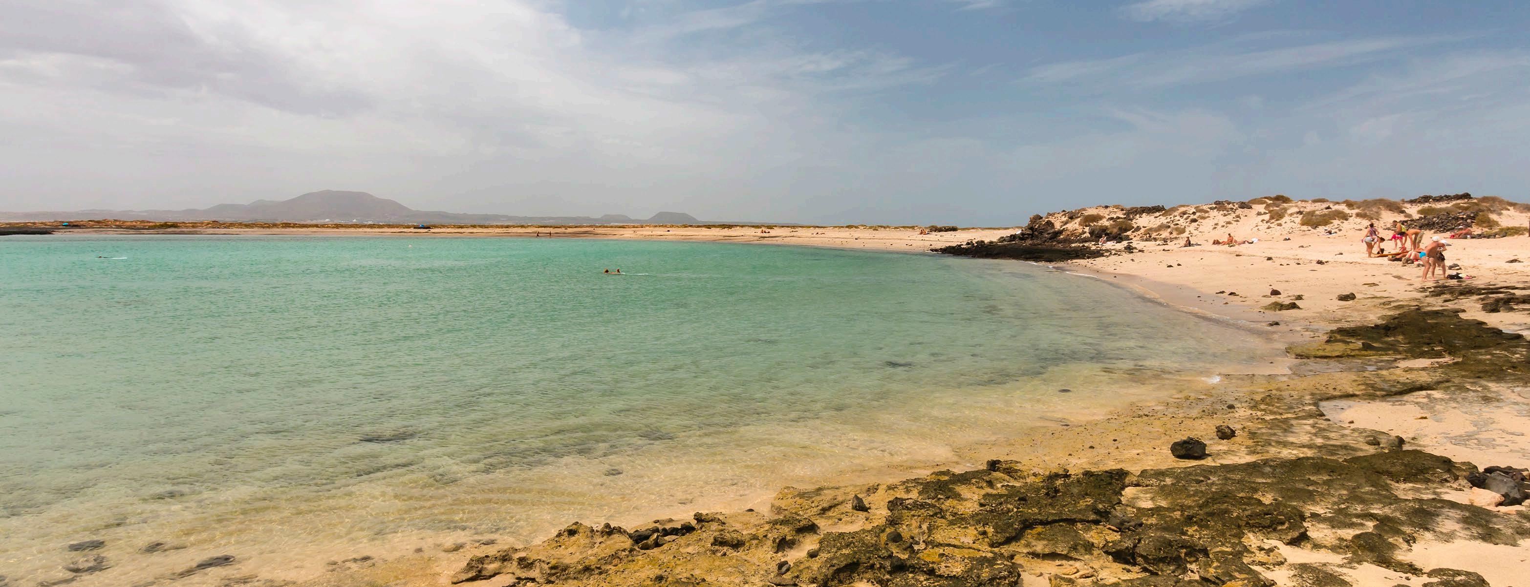 Wenn Sie Sonne und Meer suchen, bietet Ihnen die insgesamt 150 km lange Küste der paradiesischen Insel Fuerteventura alles, was das Herz begehrt. Im Norden gibt es eine Reihe von Stränden und Buchten, die unter dem Namen Corralejo zusammengefasst sind. Hier wechseln sich große Dünen und kleine Strände mit klarem Wasser ab.