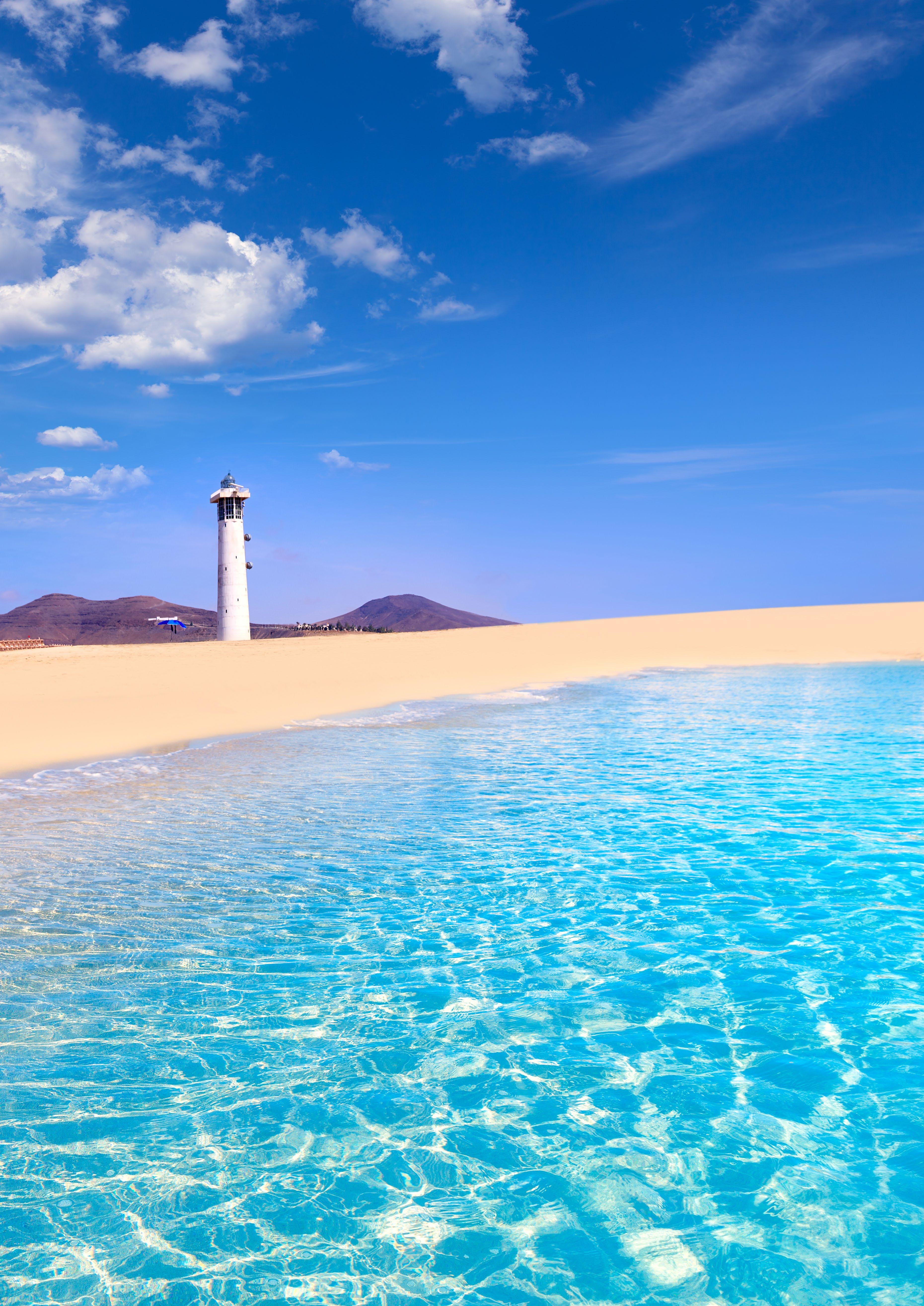 If you're looking for sunshine and the sea, there are 150 kilometres of idyllic coastline around Fuerteventura with something for everyone. In the north there is a group of beaches and coves which come under the name of Corralejo, where there are extensive dunes interspersed with little beaches and crystal-clear waters.