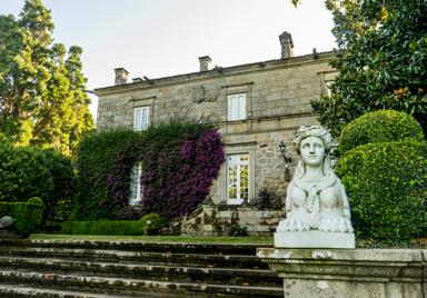Rubianes tem um jardim fran cês único de 40 hectares com magnólias, um labirinto de plantas, uma grande variedade de camélias, eucaliptos cen tenários e o maior vinhedo da região de O Salnés.