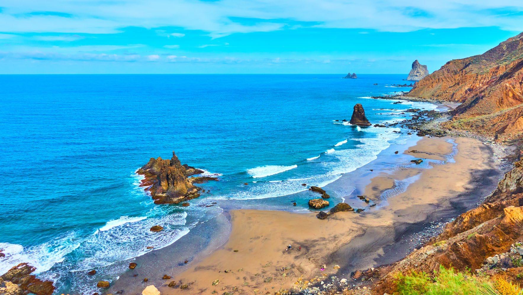 Lungo il litorale di Tenerife il mare conforma due profili ben diversi. A nord spiccano le belle spiagge di sabbia nera di origine vulcanica, incorniciate da gole verdi e paesini dall'architettura tradizionale. Nella parte meridionale, più turistica, è