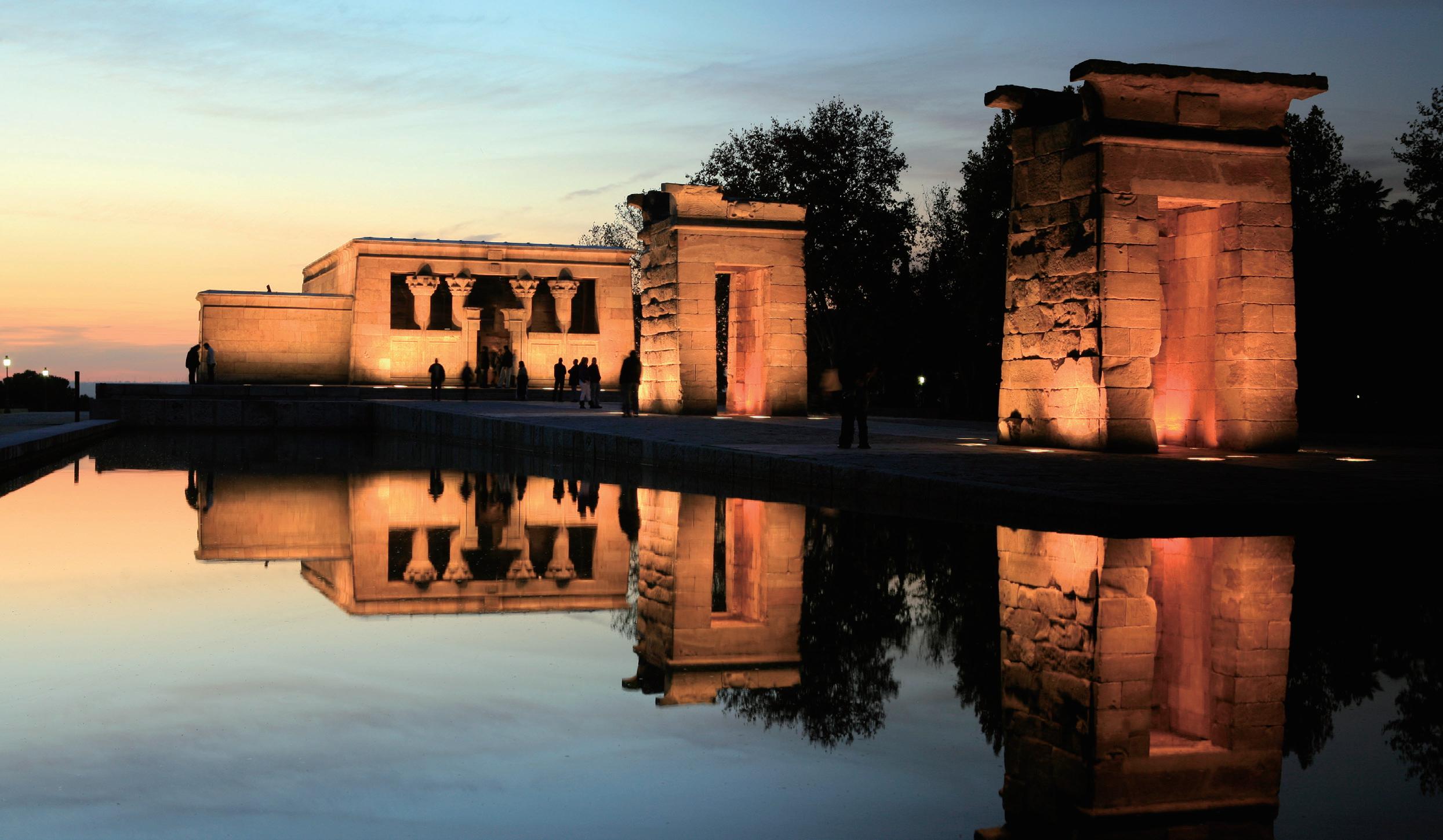 プリンセサ地区 マドリードの至宝の一つであるデボー神殿 は、 美しい オエステ公園 の中にあります。古代 エジプトの墓碑を鑑賞し、記憶に残る神秘的 な夕暮れを眺めましょう。すぐ近くには素晴 らしい芸術作品を所蔵するリリア宮殿があり、