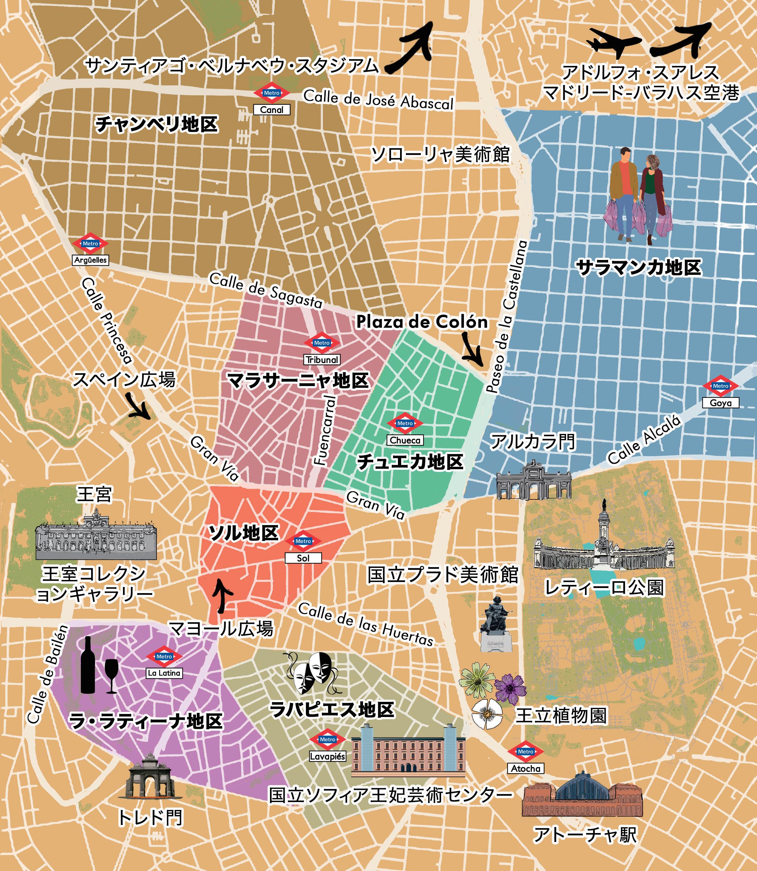 マドリードの地区 4 マラサーニャ地区 チャンベリ地区 チュエカ地区 グラン・ビアとソル地区 プリンセサ地区 サレサス地区 ラス・レトラス地区 ハプスブルグ王朝時代の地区 ラバピエス地区 ラ・ラティーナ地区 レティーロ公園 サッカーの街、マドリード