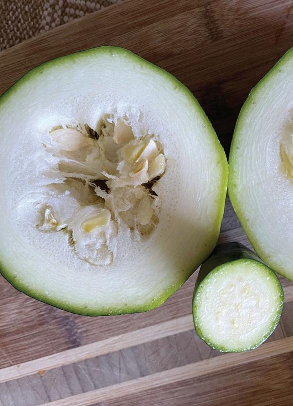 The larger the zuke the woodier it will be at its core. The solution here is to use only the outer three quarters of an inch of the plant - the green part! Cut these into manageable sections, or grate them to make zucchini fritters (see recipe).
