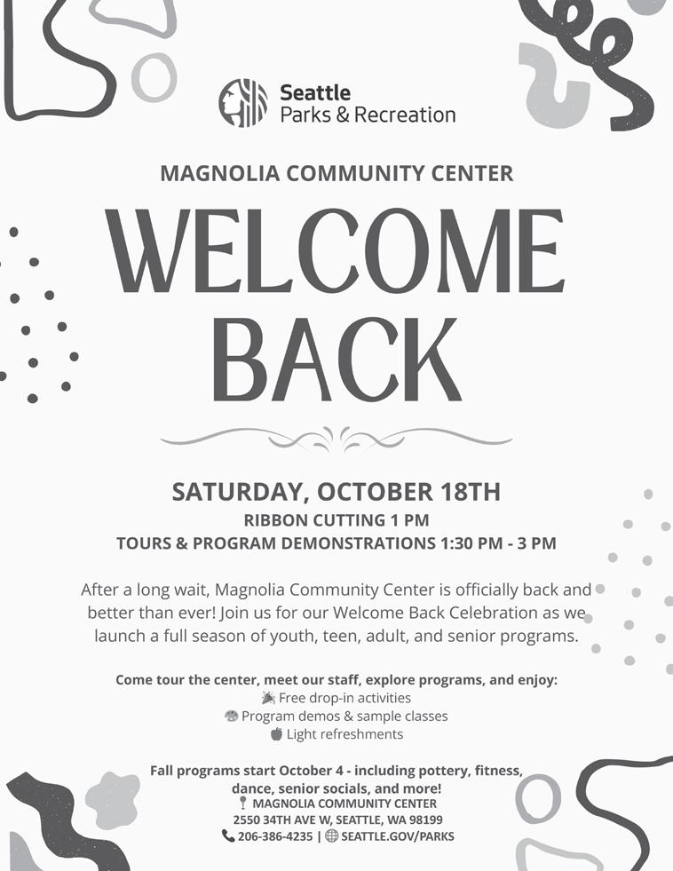 Free Activities Open Doors at Queen Anne and Magnolia Community Centers
