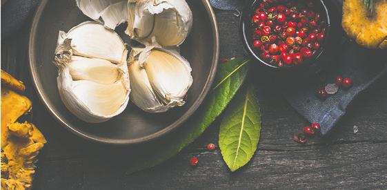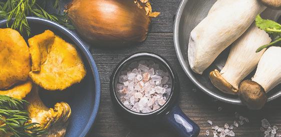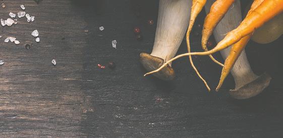 Many herbs carry their leaf avor into their owers, and you can take full advantage of this in your creative cooking. Basil blossoms, especially from purple-leafed types, make a stunning nishing touch for caprese salad, pizza, pasta, or ai dishes depending on the cultivar. You can choose Italian, ai or African types. e latter two skew toward licorice in avor. You can really have fun with some large edible blossoms. Both the owers of elder shrubs (Sambucus nigra and S. canadensis), and squash owers can be battered and fried into fritters. In the case of the trumpet shaped squash blossom, they can be stu ed with so cheese. Elder owers are also used in cordials and simple syrups for cocktails and mocktails. ( e elderberry wine made famous in Cary Grant’s vintage screwball comedy lm “Arsenic and Old Lace” is made from Sambucus nigra berries, not the blossoms.)
