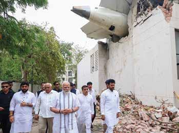 (ABOVE) PRIME MINISTER NARENDRA MODI VISITING THE CRASH SITE OF THE AI-171 FLIGHT IN AHMEDABAD ON JUNE 13, 2025.
