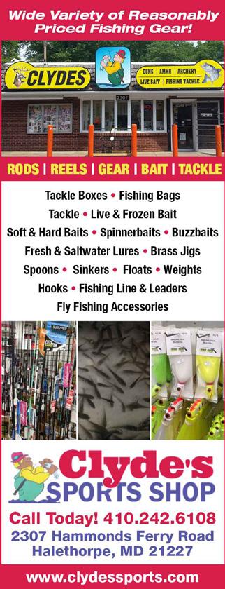 COASTAL M IDDLE B AY M IDDLE B AY M IDDLE B AY P OTOMAC TANGIER S OUND Capt. Monty’s Morning Star “The O.C. Partyboat That's Never Crowded!” Precision Fishing on MD’s Coral Reefs 443-235-5577 morningstarfishing.com Patent Pending Charters 46’ Markley • 6 Person Capacity Capt. John Whitman 410.703.3246 Herrington Harbor North • Deale, MD patentpendingcharters.com • patentpendingcharters@gmail.com fishapex.com 540-408-3113 SnakeheadS | CatfiSh | RoCkfiSh | CRappieS poTomac cReeK LLc Guided fishing trips & Custom Rod Builders Capt. Mike Sielicki & Capt. Chris Evans DEEP SEA FISHING Ocean City, MD C A ll T ODAy 410-430-8420 judithmfishingoc.com Tricia Ann II ChArTer FIshIng Join Capt. Wayne Schuhart for a great day on the Bay! at ROD ‘N’ REEL DOCK Chesapeake Beach, MD Contact Captain Wayne to make your reservations! 301-751-6056 or captain@triciaanncharterfishing.com triciaanncharterfishing.com Half Day, Full Day, Special Events Capt Drew Payne DEALE & EDGEWATER, MD HAVE YOU RIDDEN THE fishbigworm.com | 410-474-4428 301.855.8450 | misslizzycharters.com Headboat fishing from Rod ‘N’ Reel Resort! Up To 70 Passengers The Area’s Largest Party Boat! Fishing | Private Charters | Cruises Miss Lizzy Fishing Charters 410.610.6283 | woundtightcharters.com Chesapeake Bay fishing from Herrington Harbor South and Atlantic Ocean fishing from Ocean City! Ocean City, MD Up To 30 Passengers finhuntercharterfishing . com Fin Hunter Charter Fishing Pasadena MD | Deale MD 410.365.9761 fishwithweaver.com • 410.533.0928 Fish With Weaver Capt. Tom Weaver • Light Tackle & Fly Guide FISHTALKMAG . COM / CHARTER - FISHING - GUIDE Book Your Trip Toda Y !!! EbbTideCharters.com Capt. Billy Gee • Deale, MD