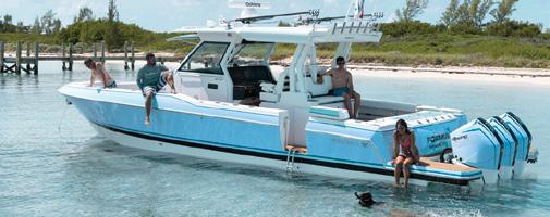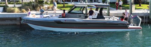 The new 38'7" Formula with 12' beam is powered by triple Mercury Verado V8s, the newly introduced triple Mercury Verado V10s, triple Mercury Racing 450Rs or twin Mercury Verado 600 outboards.